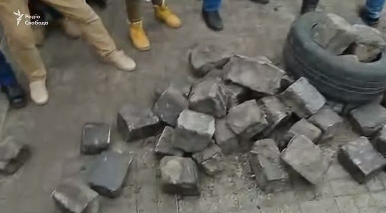 На Костёльной улице в Киеве сторонники Саакашвили уже разбирают брусчатку и собирают баррикады